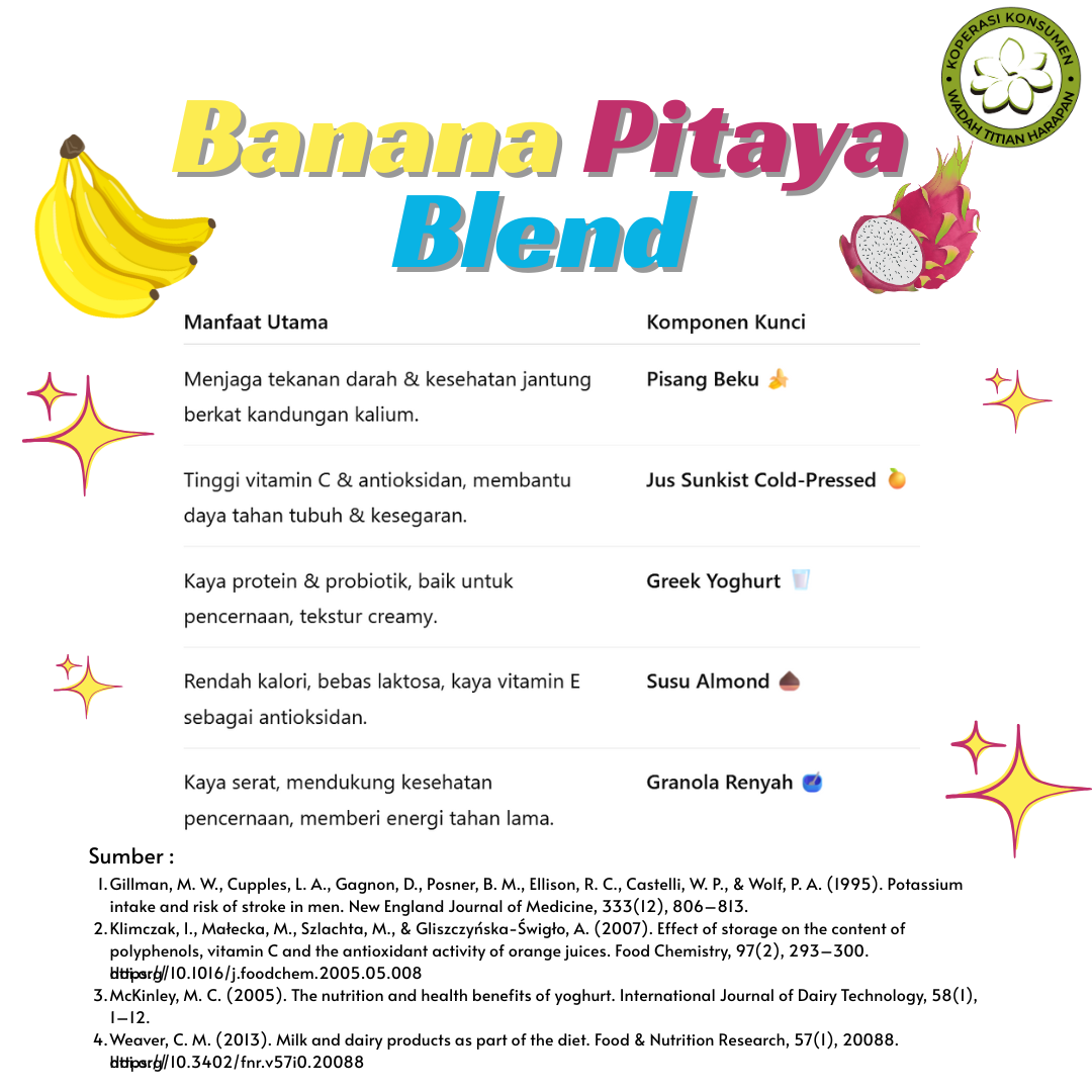 Nikmati keajaiban warna dan manfaat dari Banana Pitaya Blend dari Jolie Juice! Smoothies dengan warna merah muda cerah yang memukau ini adalah perpaduan sempurna antara pisang beku dan pitaya segar (buah naga), dipadukan dengan Greek yoghurt dan susu almond. Hasilnya? Minuman yang Sehat, segar, creamy, dan penuh energi!